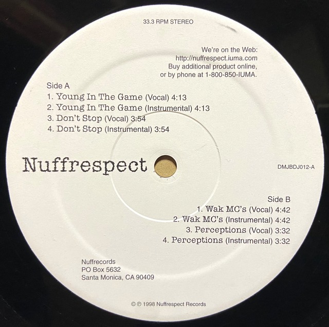 12inchはこの作品のみというNYアングラMCによる人気シングル。 両Side共にマイナー感たっぷりのDopeサウンドですが、Side-Bはその中にもややメロウ気味のウワモノを薄く乗せています。 LPもリリースしているようですが聴いてみたいですね。 ※※※商品の状態、種類※※※ 【レコード】B- 【種類】USオリジナル 【追記】テープによるセンターホール補正有り。